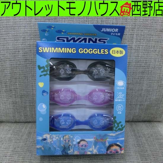新品 スワンズ スイミングゴーグル③ 3個セット 子ども用 黒/青/ピンク系 紫外線カット 水泳 SWANZ レターパックプラス対応 札幌市 西区