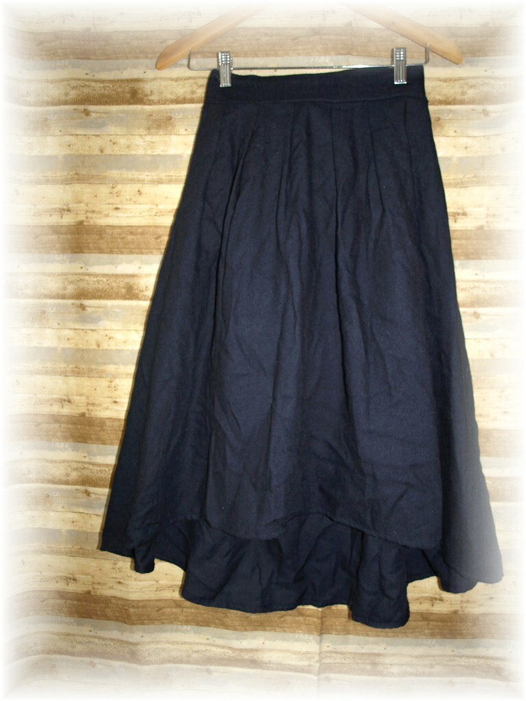 - リボン付き フィッシュテールフレアースカート M ネイビー 秋・冬