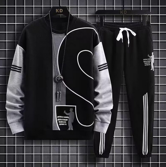 - メンズ セットアップ トップス+ズボン 2点セット スポーツウエア 大きいサイズ長袖 春秋 ゆったり カジュアル 黒白 M~5XL選択可