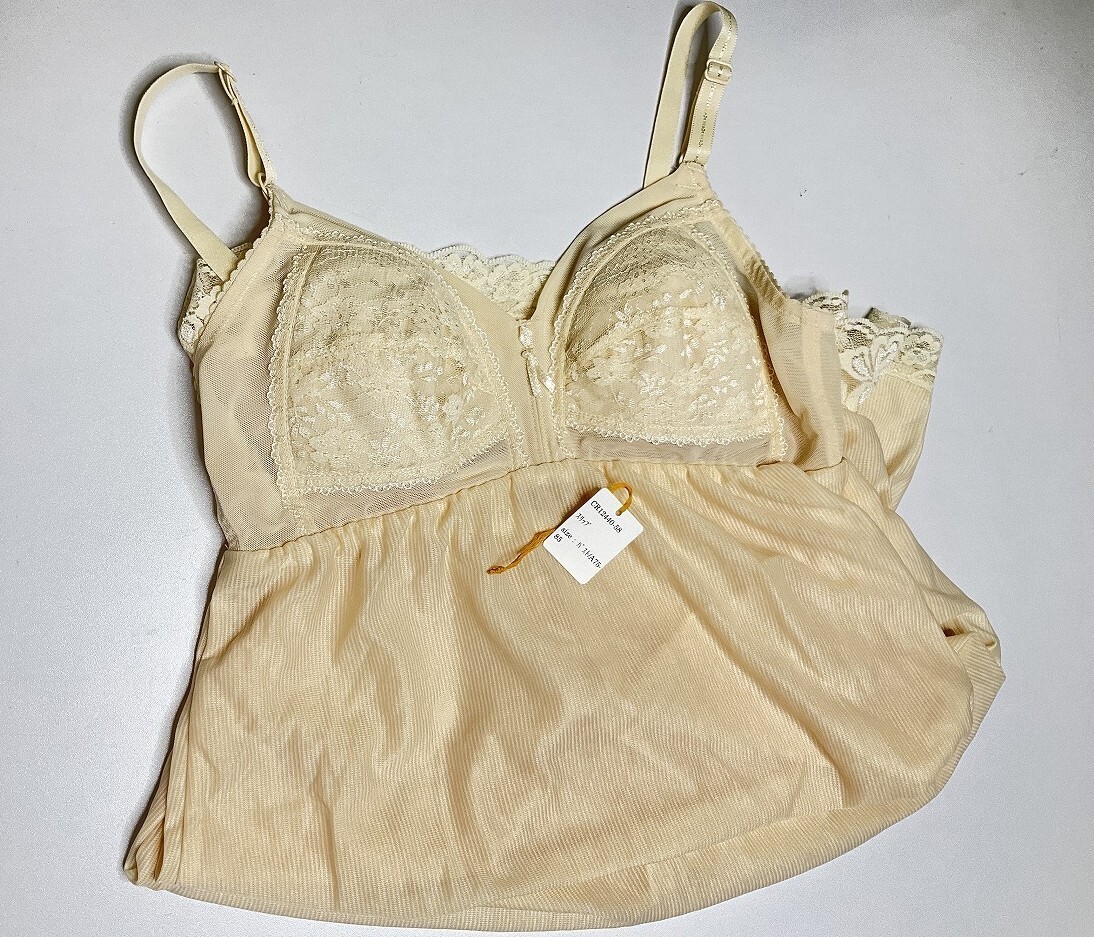 - CR12440-58 IBK⑥【特価】新品 スリップ A75~85 1枚 ピーチベージュ カップ付 レース 花柄 リボン付 おしゃれ レディース