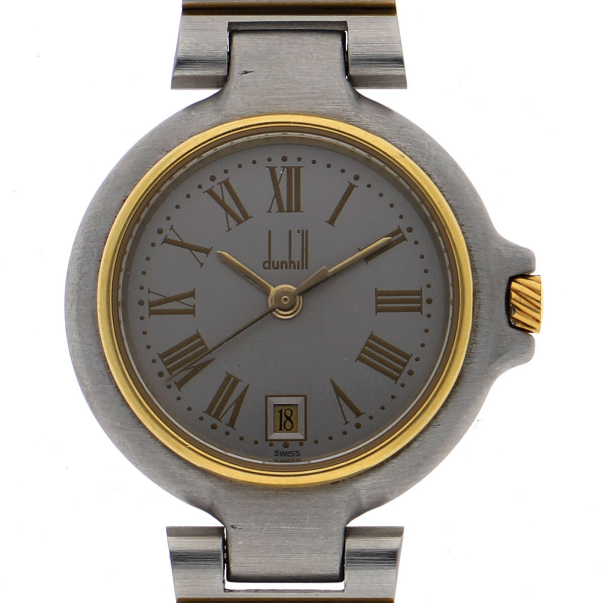 > Dunhill ダンヒル 12 21557 ラウンド グレーダイヤル SS/GP クオーツ レディース【135496】