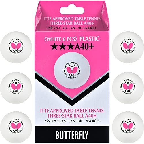 - 6個入り Butterfly(バタフライ) 卓球 ボール バタフライ スリースターボールA40+ ホワイト(270)