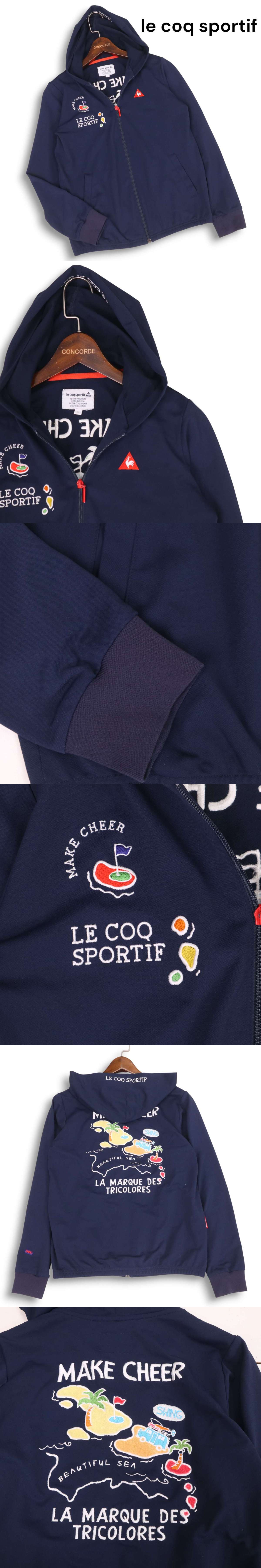 > le coq sportif GOLF ルコック スポルティフ ゴルフ 通年★ 刺繍 フーディー フルジップ パーカー Sz.M レディース ネイビー