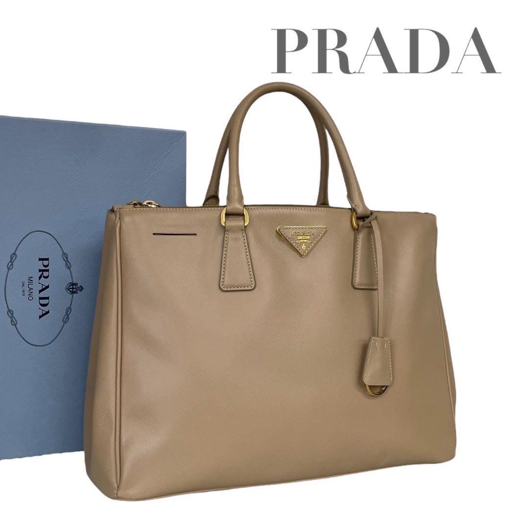 - プラダ ハンドバッグ ガレリア サフィアーノ 三角ロゴ ベージュ 5098