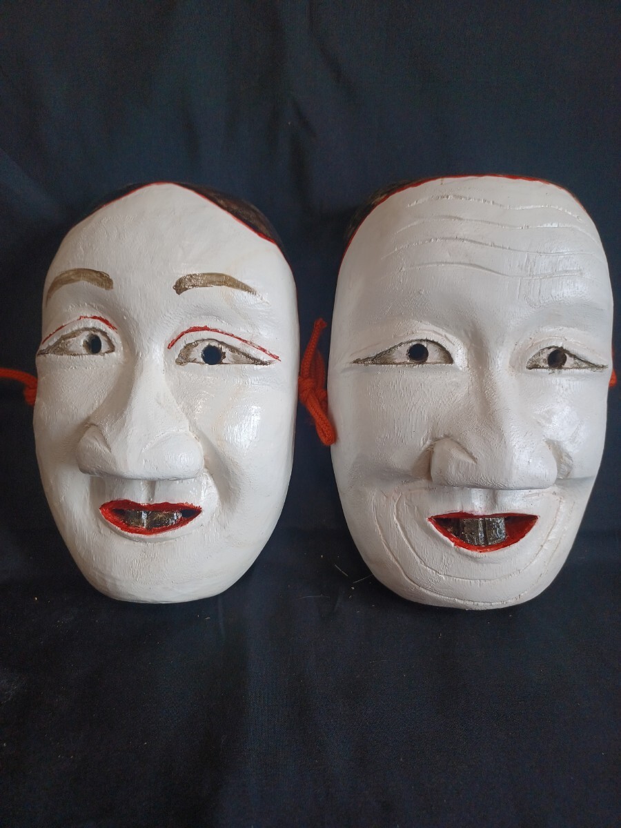 > No.14 コレクター放出品 能面 奇稲田姫 神楽面 お歯黒 お面 魔除け 木彫り 木彫り面 能面 神楽 細密彫刻 木工芸 箱なし 和風インテリア