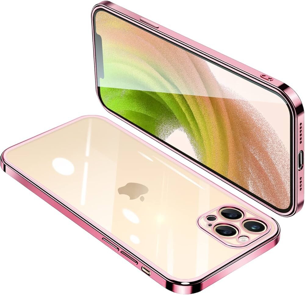 > iPhone12 Pro ケース クリア カバー 透明 スマホケース 耐衝撃 軽量 メッキ加工 (ローズゴールド)