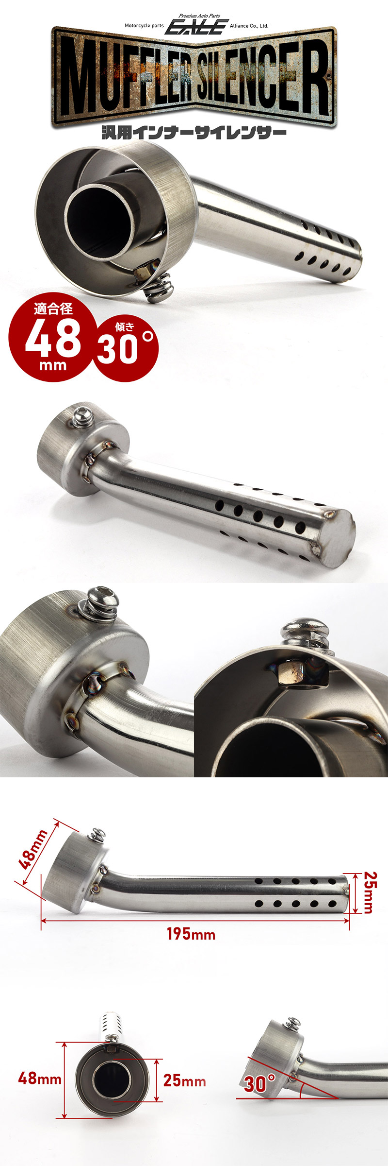 - バイク 汎用 49mm 30度 マフラー インナーサイレンサー エンドバッフル 消音器 ステンレス 排気音抑制 S-1003