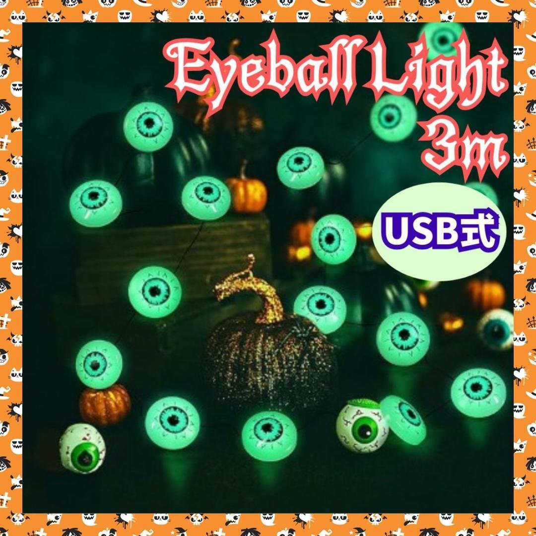 - 蛍光 目玉 LED ライト USB 3m 30LED ハロウィン ゴースト 電飾