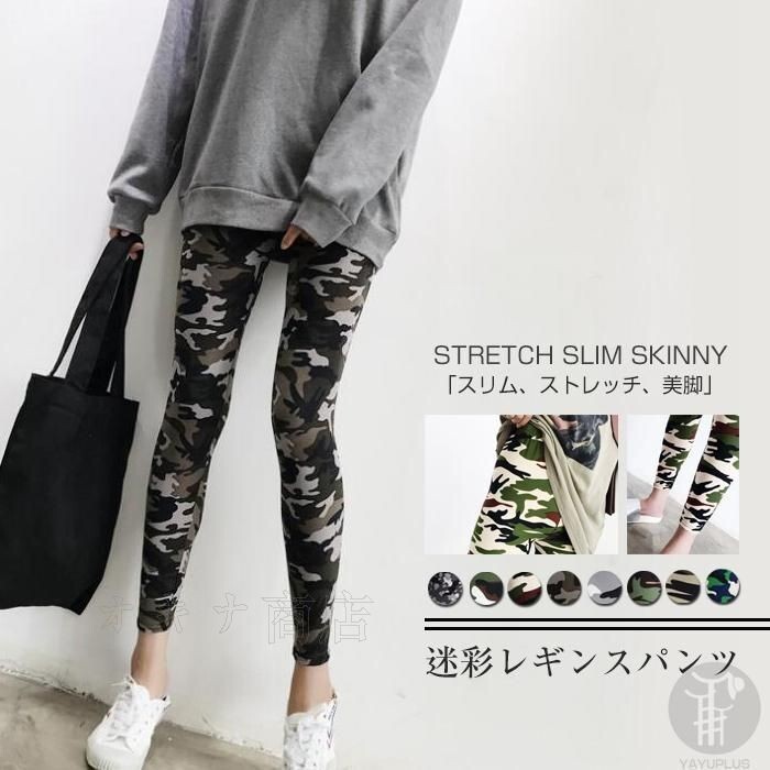 - レギンス レギンスパンツ レギパン レディース 迷彩柄 スパッツ ルームウェア 室内着 薄手 着痩せ スタイリッシュ ハイウエストz