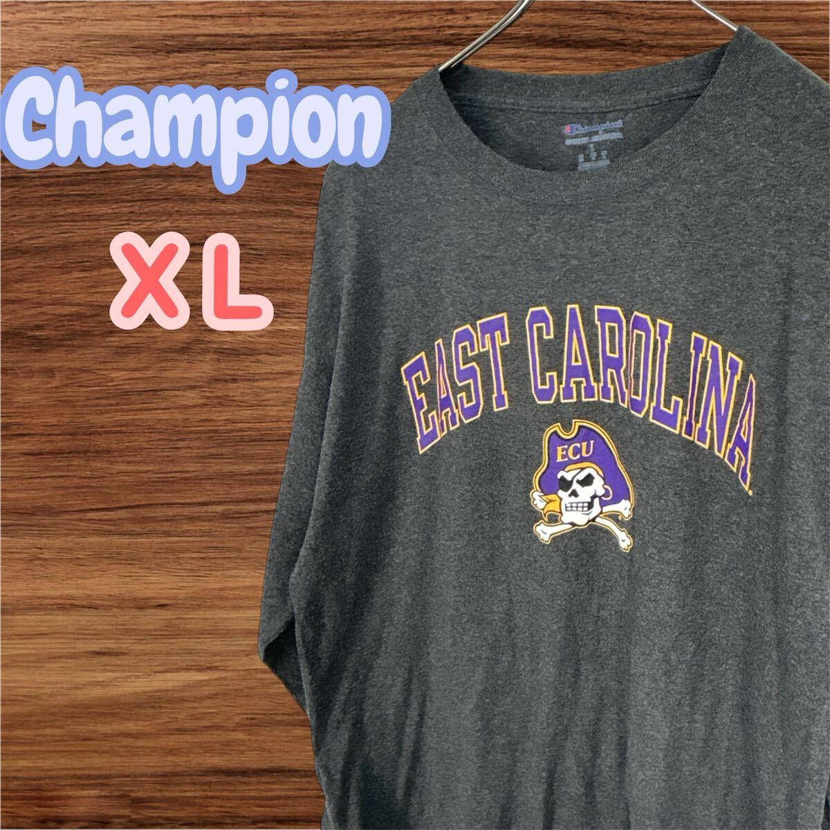 - サイズXL Champion Tシャツ ダークグレー 丸首 長袖 古着 ts3400