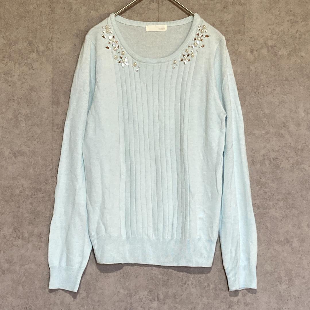 - インデックス(M)ビジュー付ニット*セーター*薄手*ウール混*長袖*パール*水色
