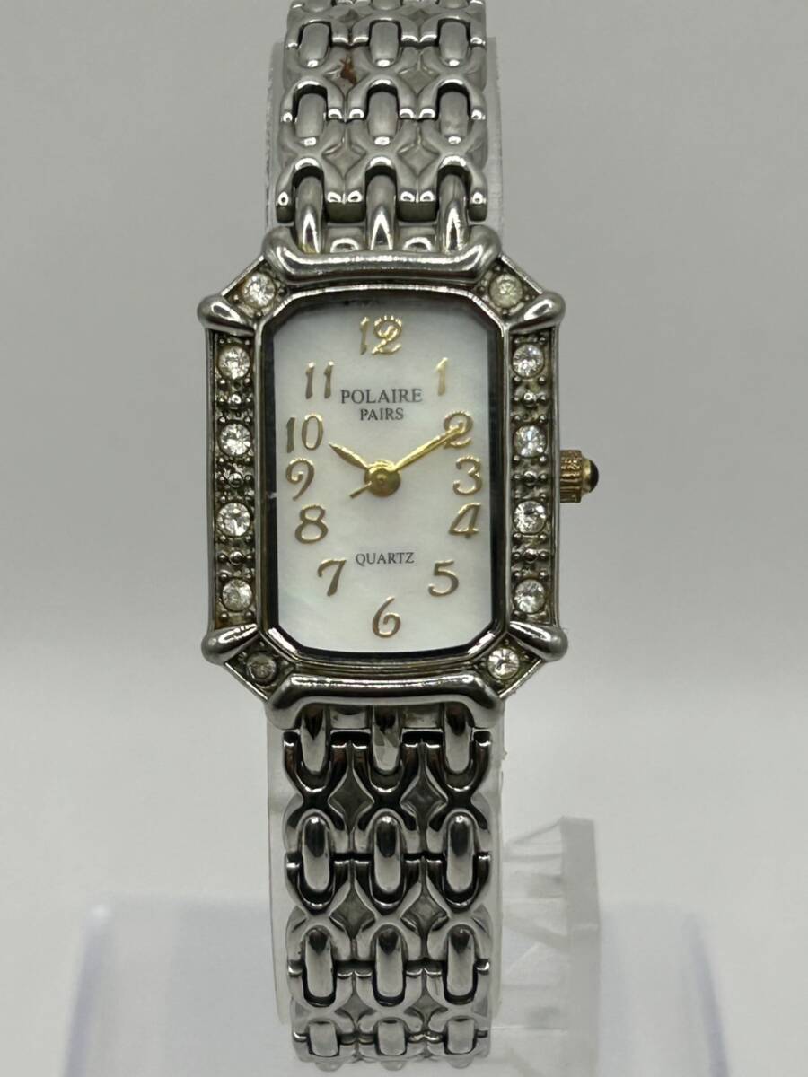 - ◎【腕時計】POLAIRE ポレール クォーツ式 レディース 女性 石付き 豪華 文字盤 スクエア 四角 カラー 白 ホワイト