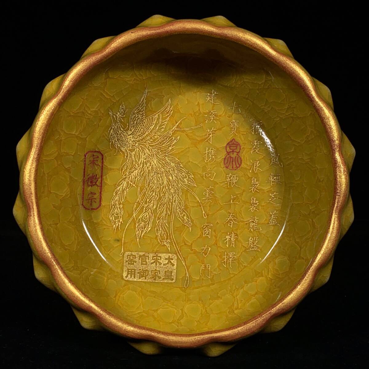 - 蔵友旧蔵出 宋 官窯 黄釉 冰裂紋 包口 銘文 鳳紋 蓮花洗 稀少珍品 貴重品 古陶瓷品 置物 古賞物 中国古玩 中国古美術品
