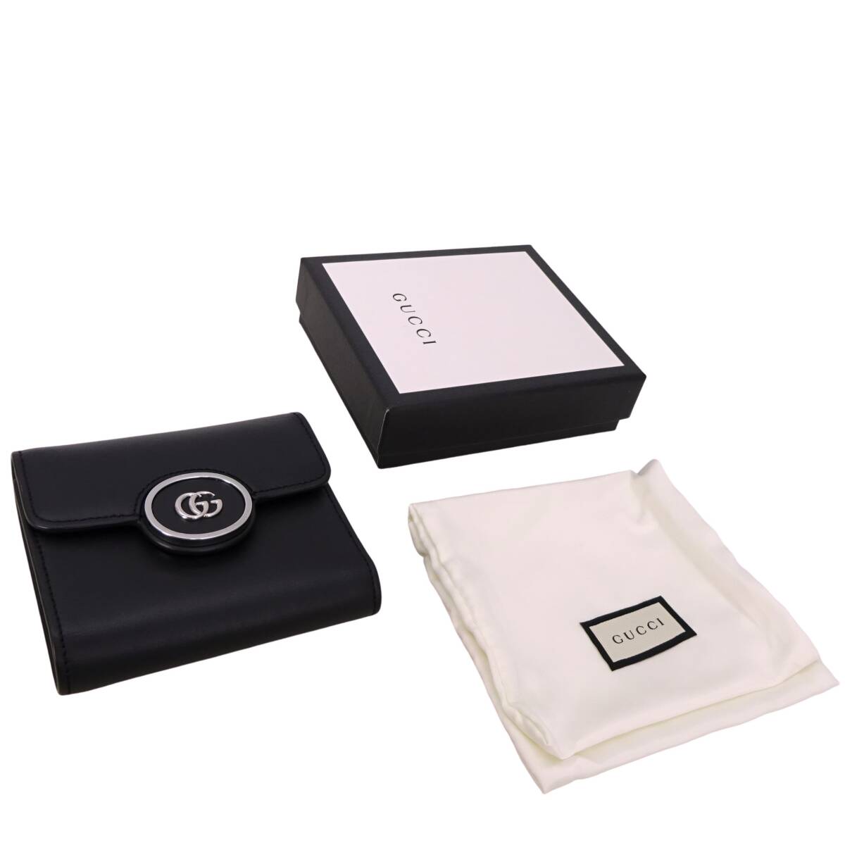 - 本物 良品■グッチ■PETITE GG マーモント ミディアムウォレット ブラックレザー シルバー 760197 三つ折り財布