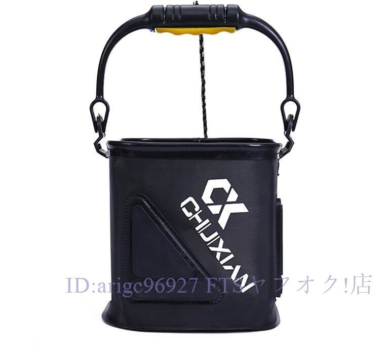 > ★新品バケツ 釣り 折りたたみ 7L バッカン 蓋付き 5Mロープ付き 洗車 水汲み 釣具 釣り具 魚釣り 海釣り 川釣り フィッシング ブラック