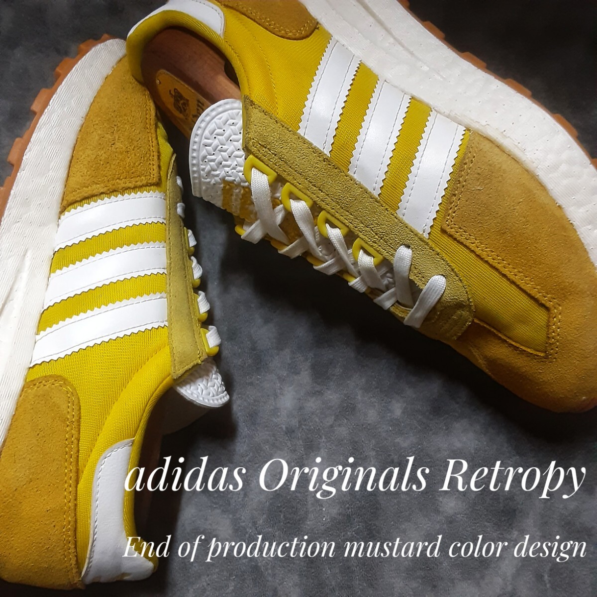 - 最値!定14300円!生産終了!マスタードカラー!ニューレトロチャンキースタイル!アディダス レトロピー高級厚底 スニーカー!芥子色白 26.5cm