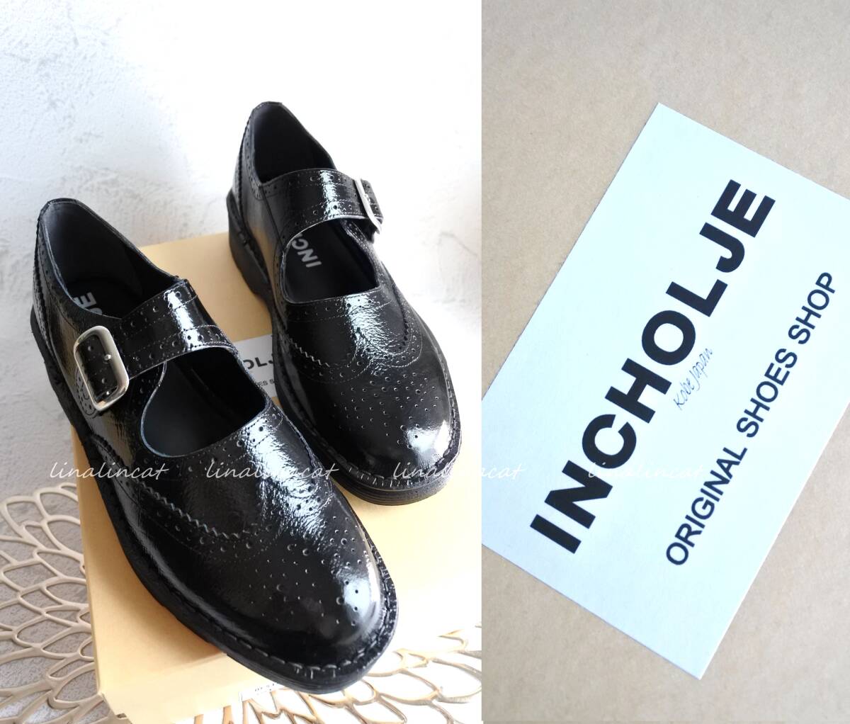 - 未使用 日本製 インコルジェ*ベルト メリージェーン① レザー シューズ エナメル 黒24 メダリオン ウィングチップ コンフォート