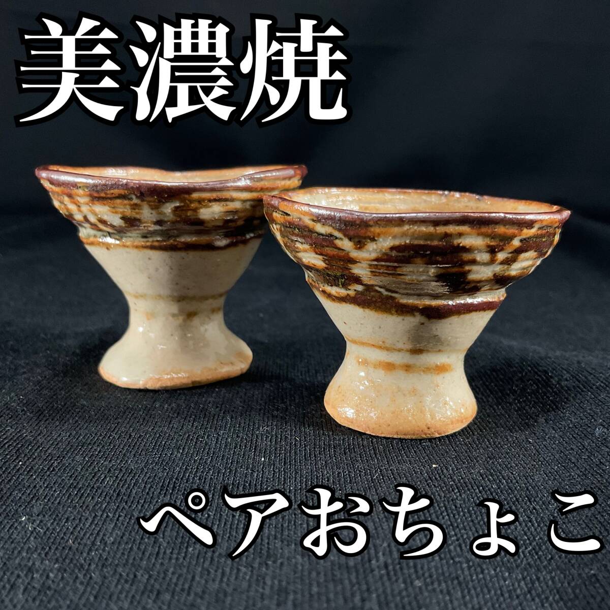 - 【未使用】美濃焼 手造り ペアお猪口 2客セット 陶器 酒器 おちょこ コレクション(E293)