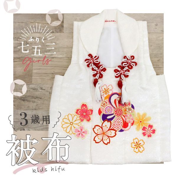 - 【 七五三 子供用 被布 女の子】 白 ねじり梅 『新品』 2歳 3歳 着物 コート 飾り紐付き 中綿入り 菊 桜 羽織り 女児 正絹 日本製 k25-84