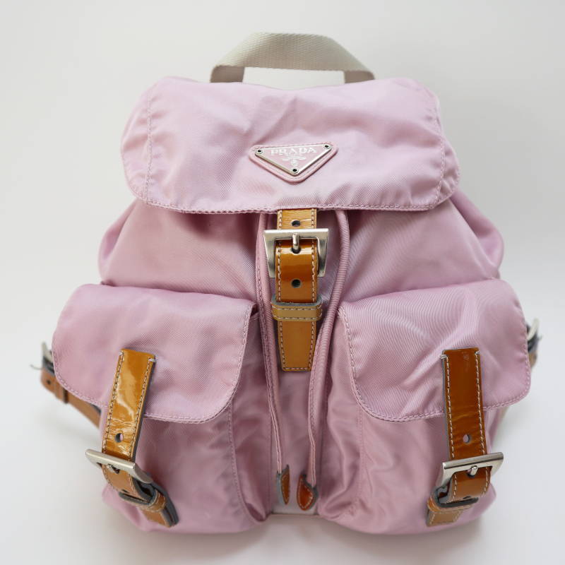 - PRADA プラダ ロゴプレートナイロン/パテントレザ― バックパック リュック B6677 パープル/チャ S09-k092
