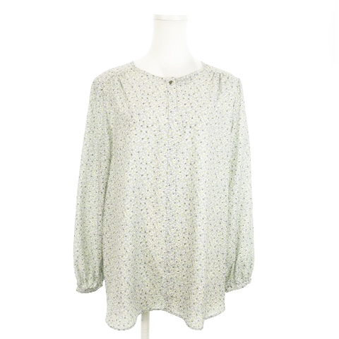 > ミッシェルクラン MICHEL KLEIN ブラウス ラウンドネック 長袖 小花柄 総柄 とろみ きれいめ 38 グレー /AO8 レディース