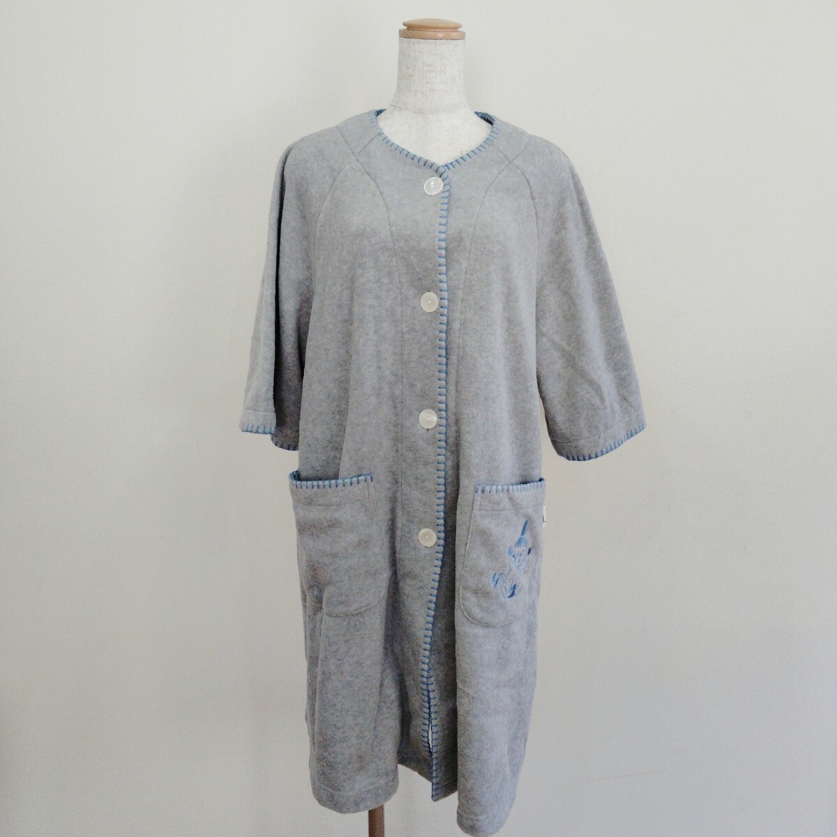 - 194/L/Amour レディース ルームウェア フリースガウン ムーミン リトルミイ 刺繍 替ボタン付 ライトグレー