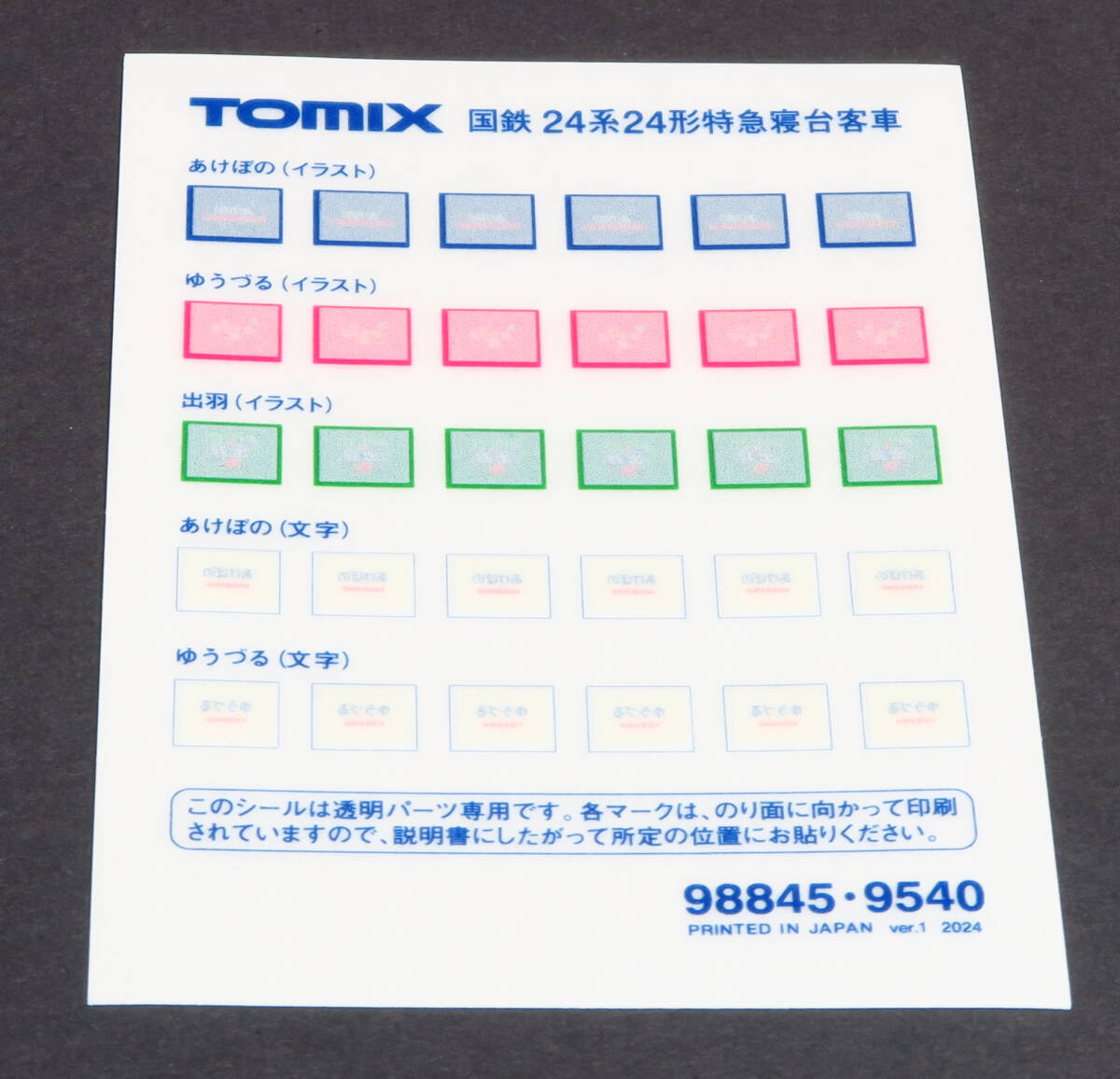 > TOMIX 98845 24系24形 寝台特急 ゆうづる 基本セットばらし品 トレインマークシール ゆうづる/あけぼの/出羽