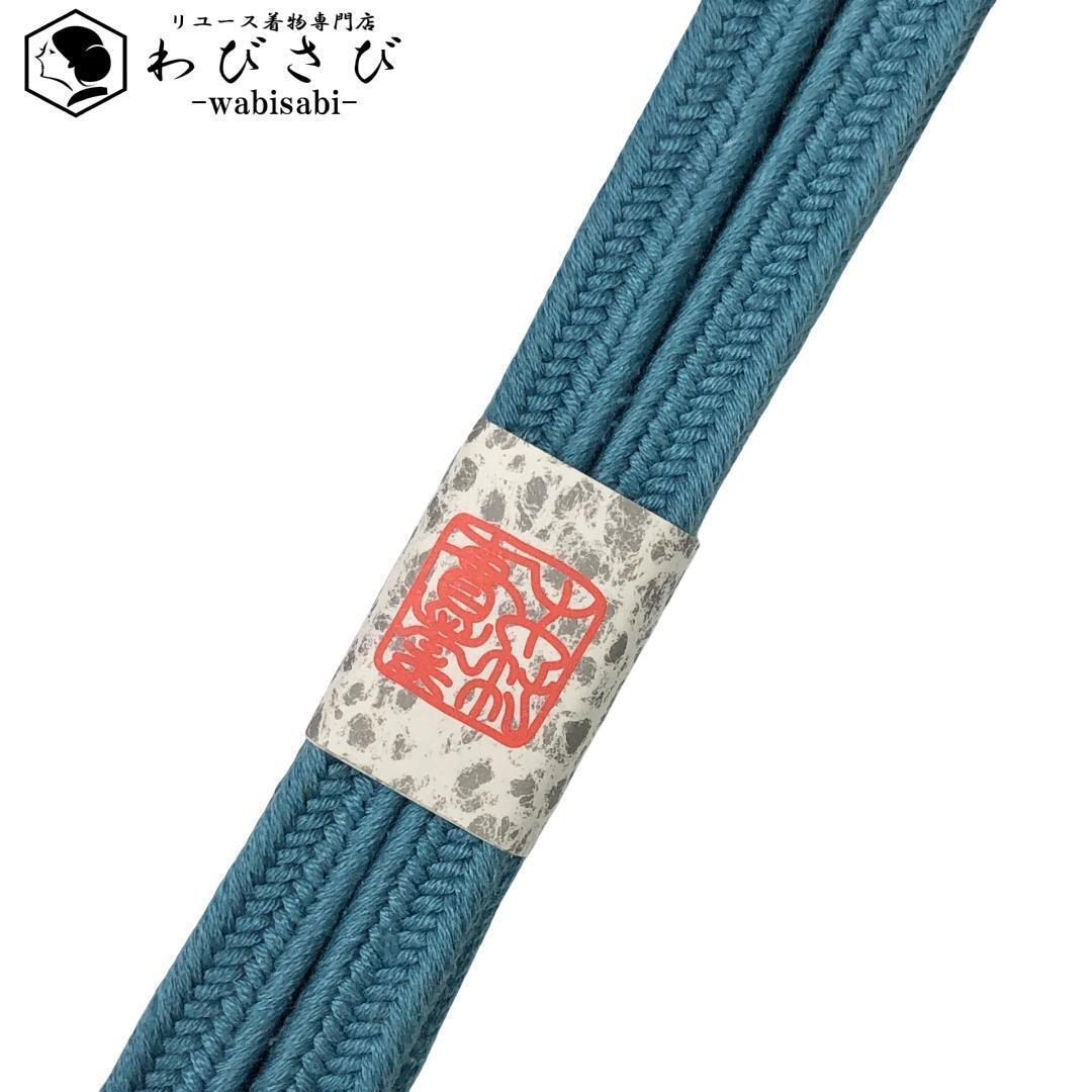 > 和装小物 帯締め 正絹 御岳組 平組紐 組紐 錆浅葱色 C-6463 着物 きもの kimono 和服 和装 中古 リサイクル着物 【送料無料】