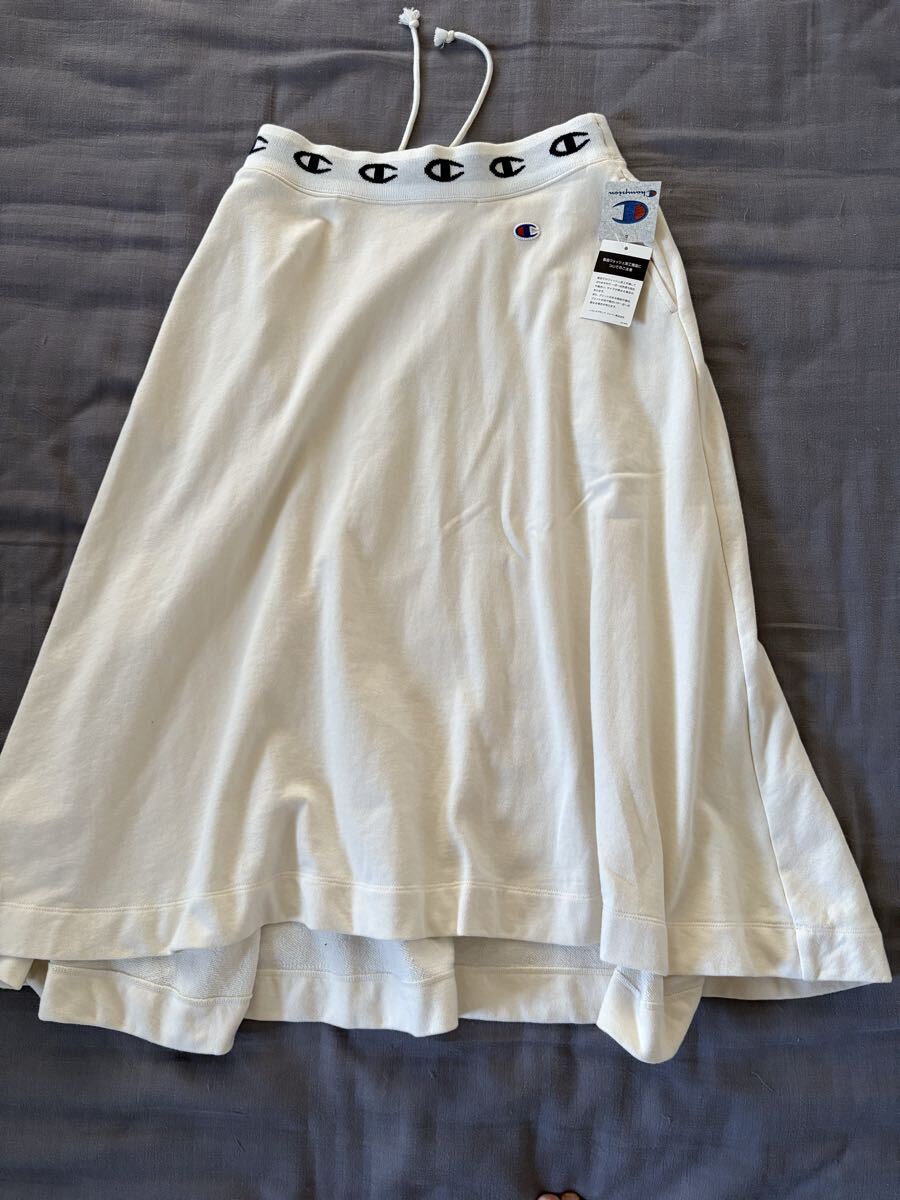 - 新品 Lサイズ Champion チャンピオン スカート 白 ウエストゴム スウェット生地