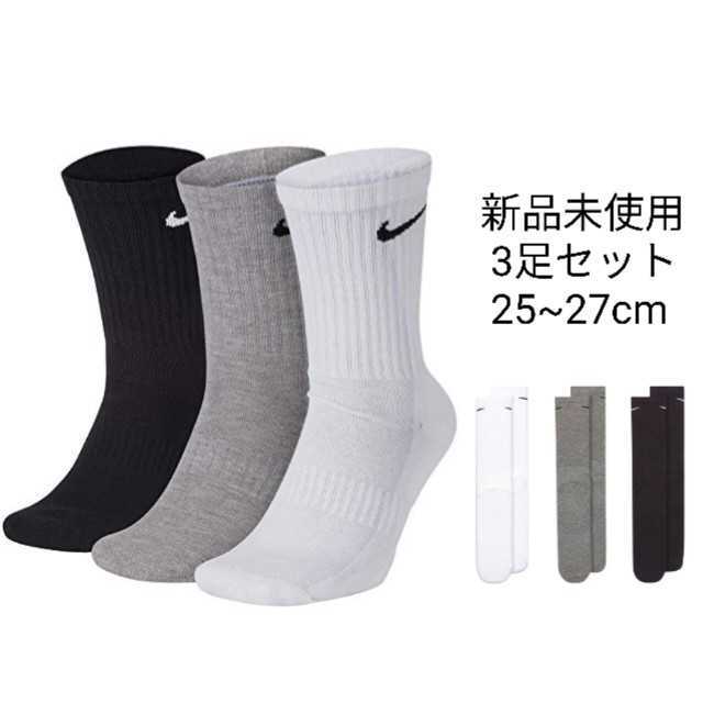 - 新品未使用 NIKE クルー丈 ソックス 白黒グレー 3足セット 25~27cm sx7664 ナイキ 靴下 ホワイト ブラック