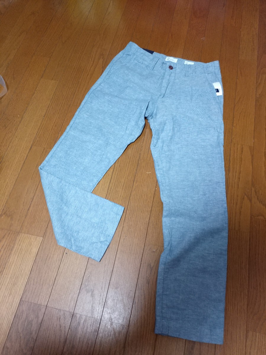 > 新品タグ付き★Gap ギャップ パンツ 麻/綿 テーパードスキニー パンツ ボトムス W30 青グレー 無地 メンズ カジュアル