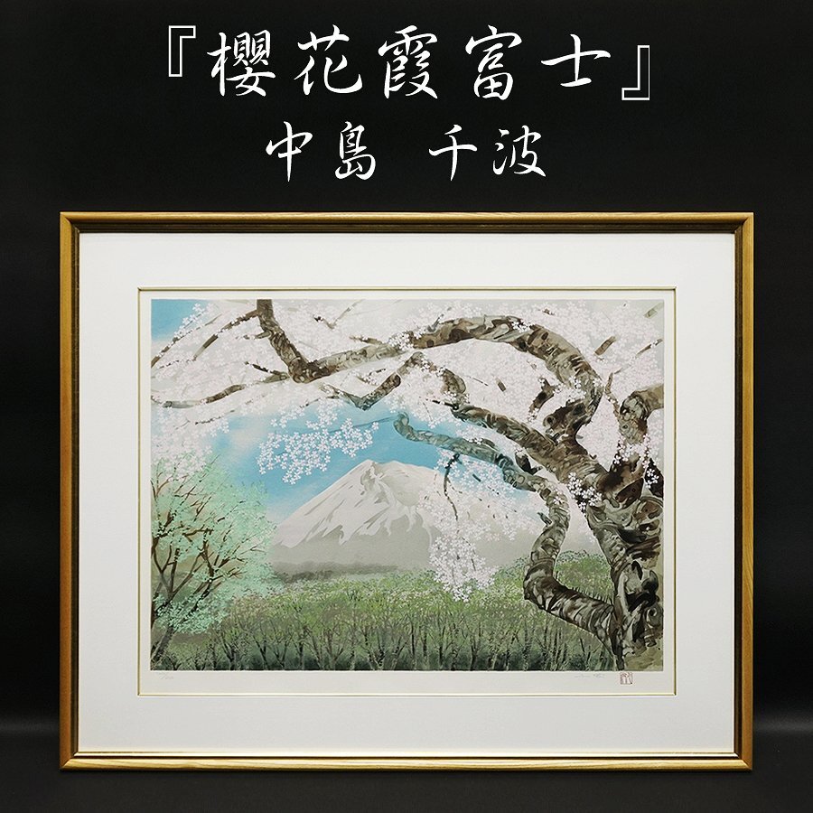 - 中島千波『櫻花霞富士』144/200 シルクスクリーン 版画 絵画 日本画 額装 美術 芸術 大判 肉筆サイン有 古美術品