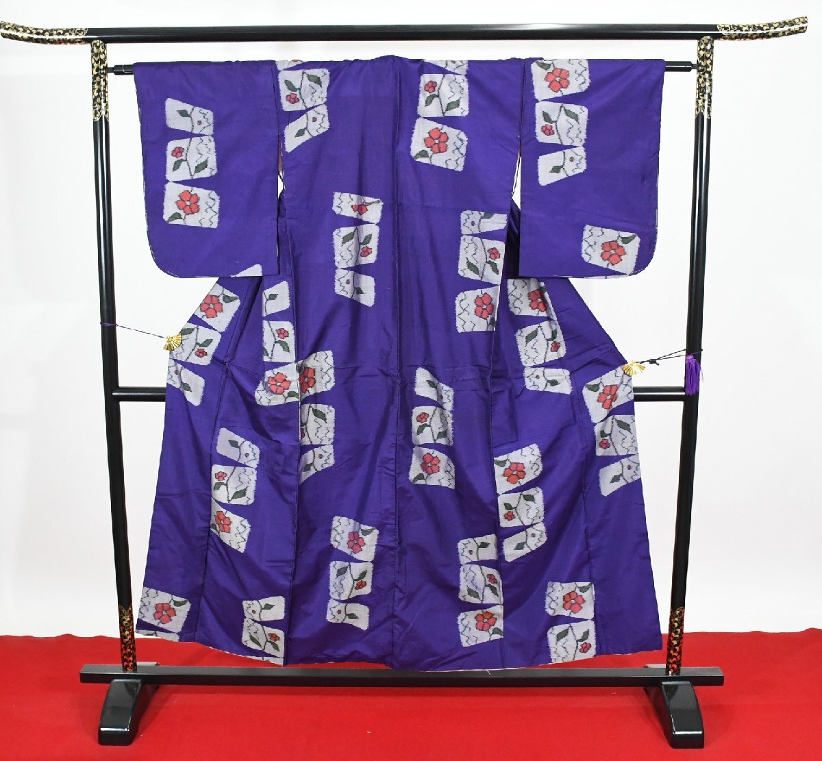 > メイセン 銘仙 花 正絹 身丈148cm 裄丈63cm ★着物 pb-3619 桜庭呉服店