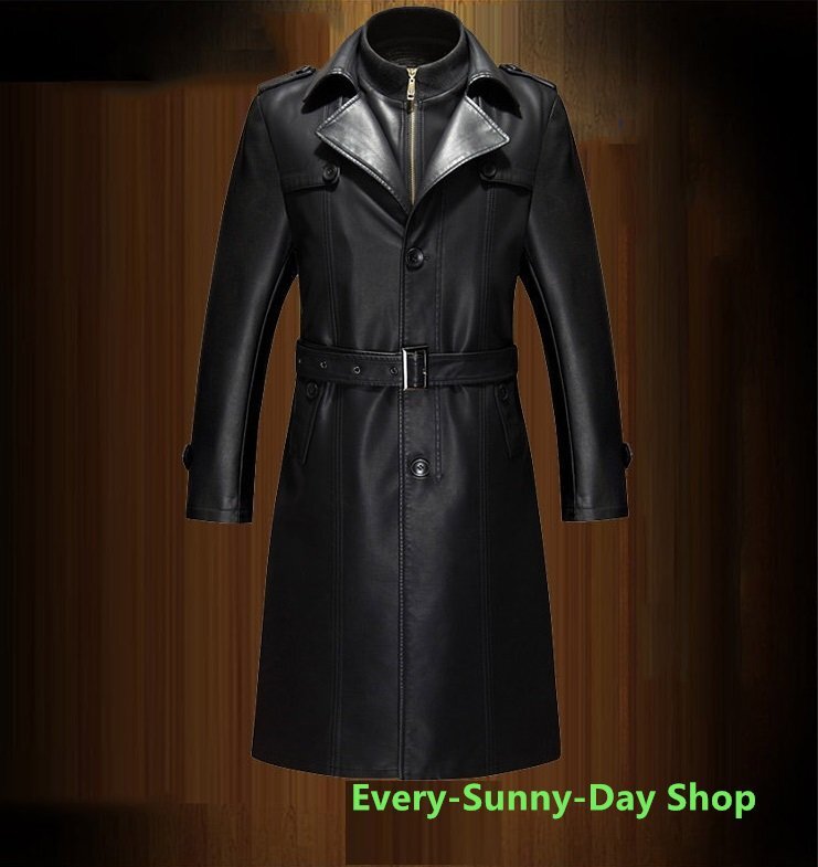 - 新品裏起毛 ライダース レザージャケット トレンチコート 革ジャン メンズ 厚手 防風 防寒 ロングコート 秋冬 本革「M~4XL] 選択可