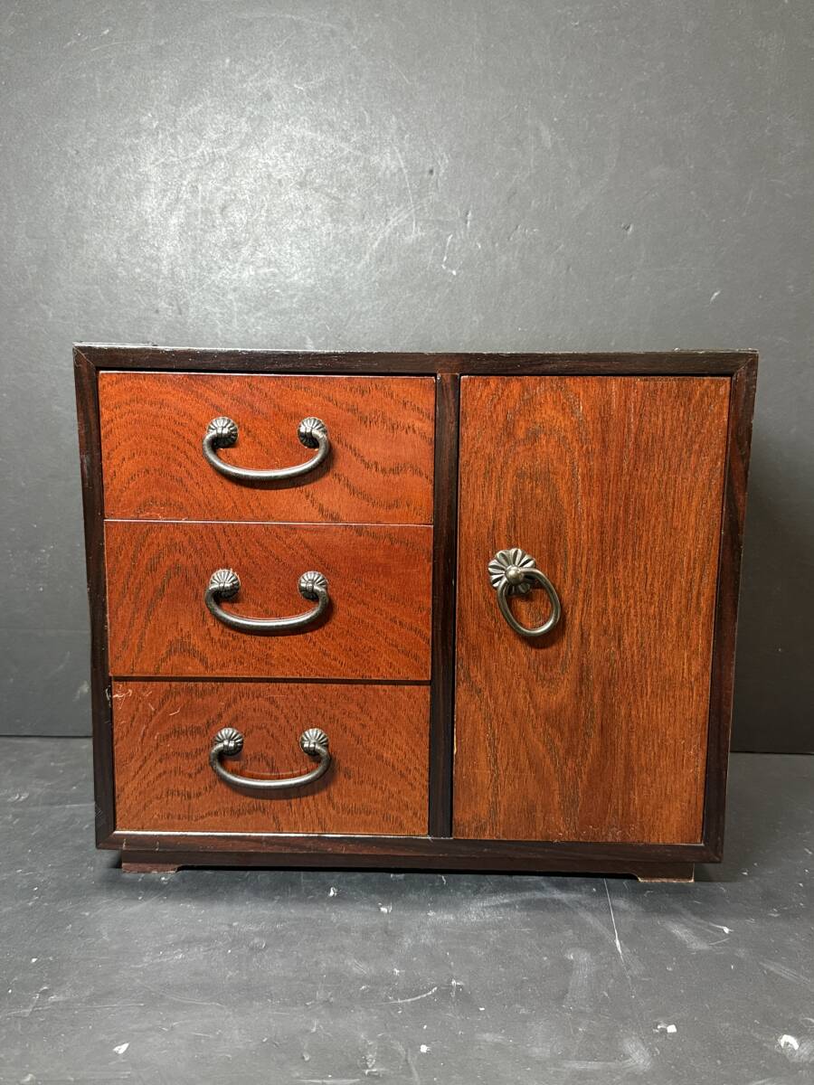 > ★コレクター必見 小引出し 三段 小物入れ 収納 整理箱 金具留め 工芸品 木製品 古家具 昭和レトロ コレクション GT492