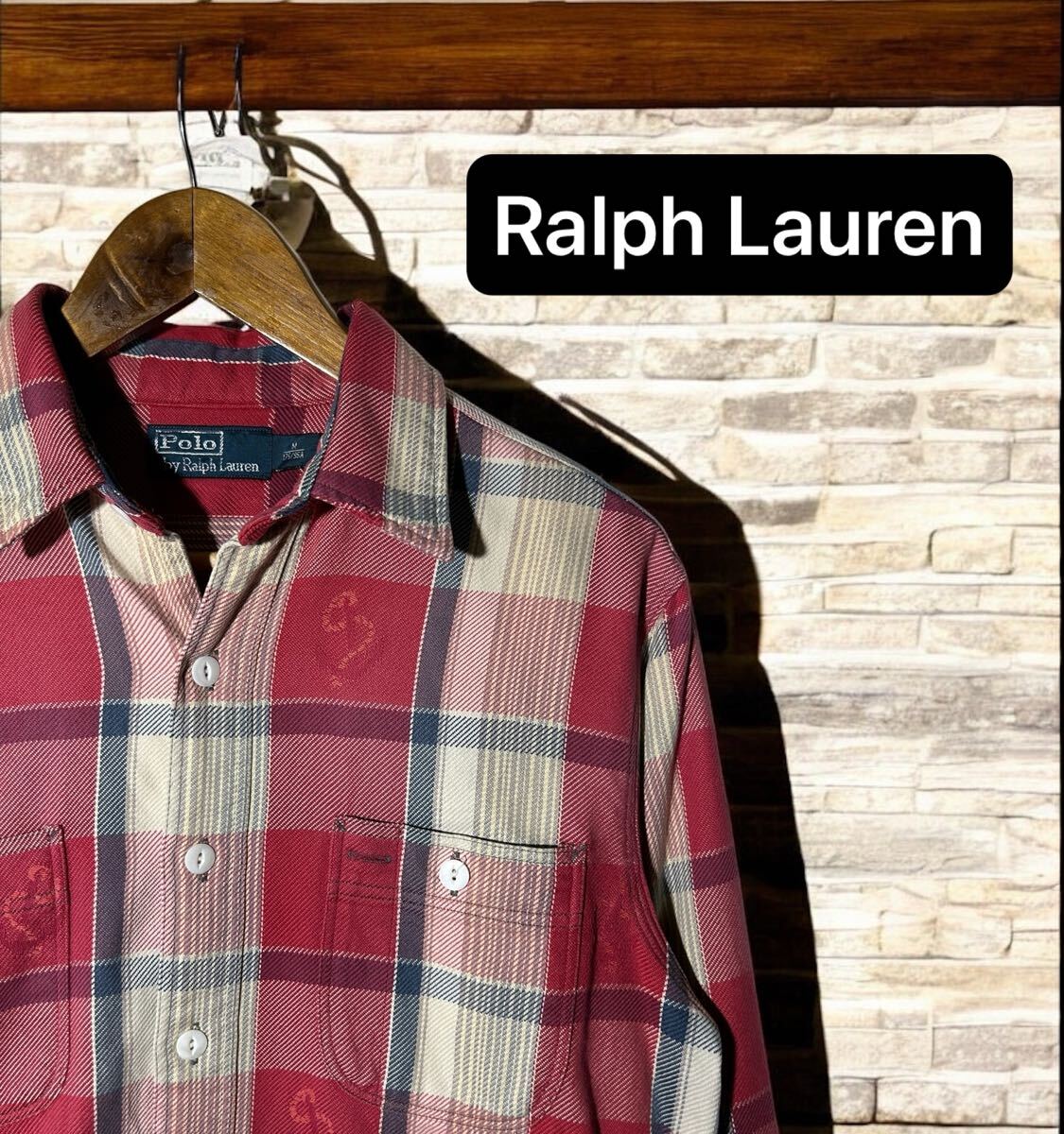> 1990's POLO Ralph Lauren ポロ ラルフローレン ヴィンテージ フランネル シャツ フェード レッド チェック ジャガード エンブロイダリー