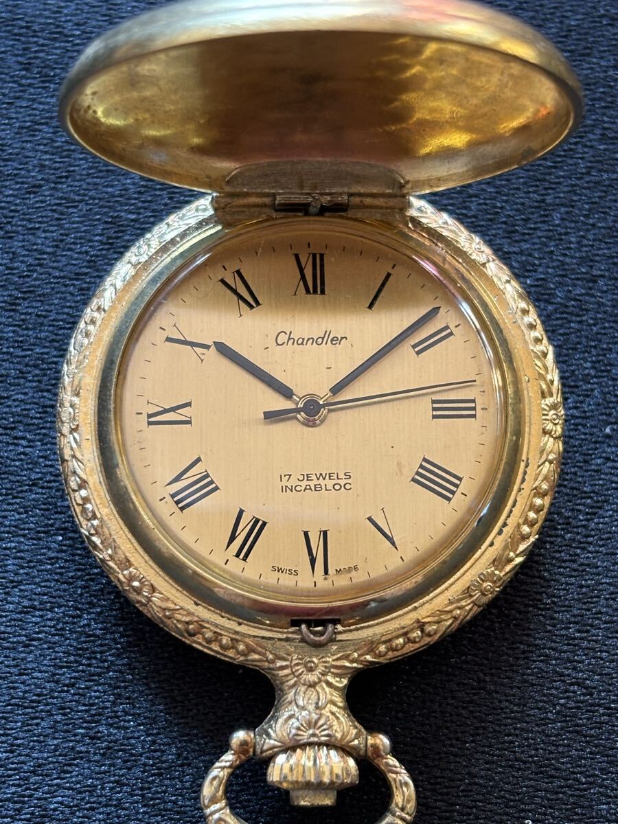 - 【アンティーク】Chandler 懐中時計 17石 手巻き ハンターケース 稼働品