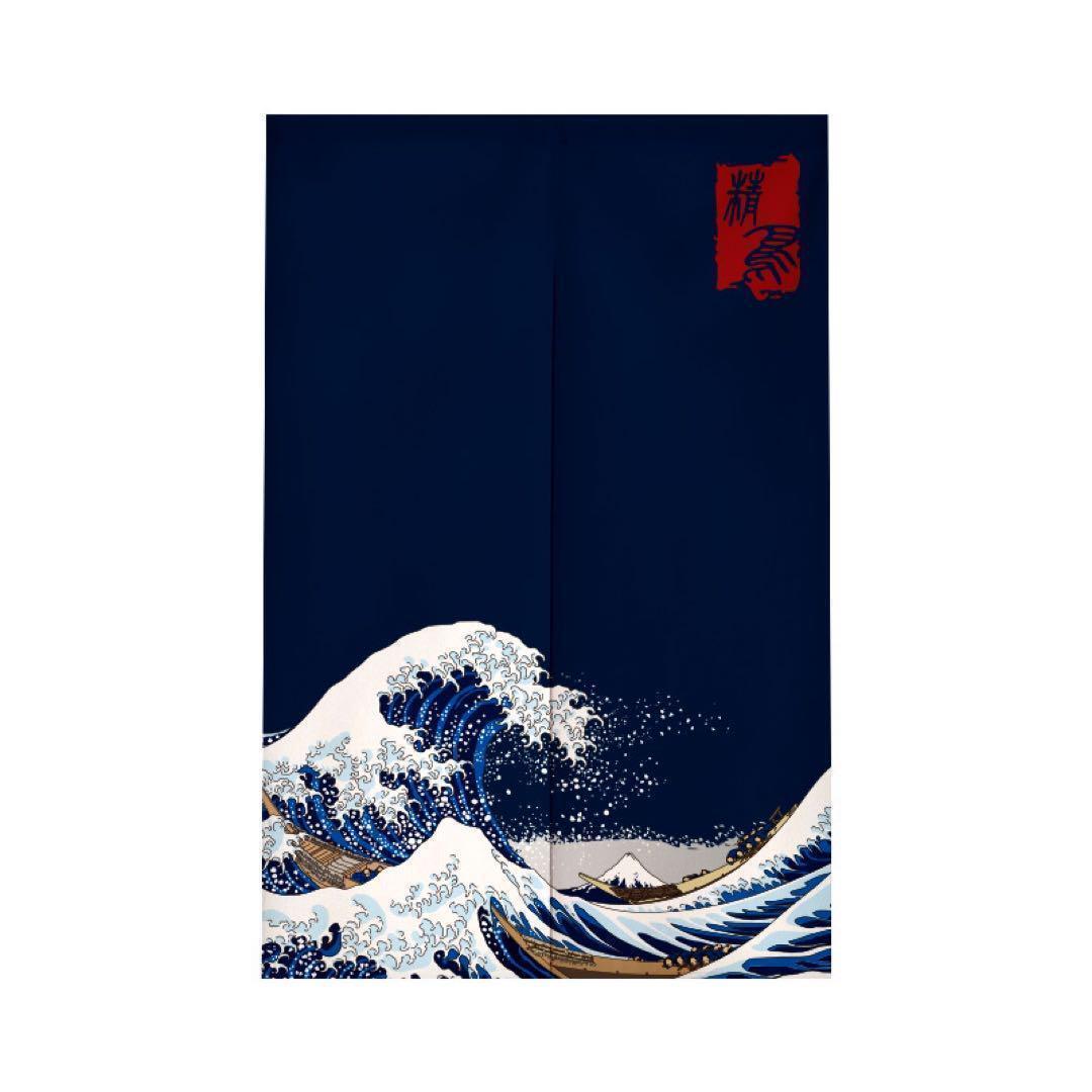 - のれん 神奈川沖浪裏 青 カフェカーテン 目隠し 間仕切り 暖簾 北斎