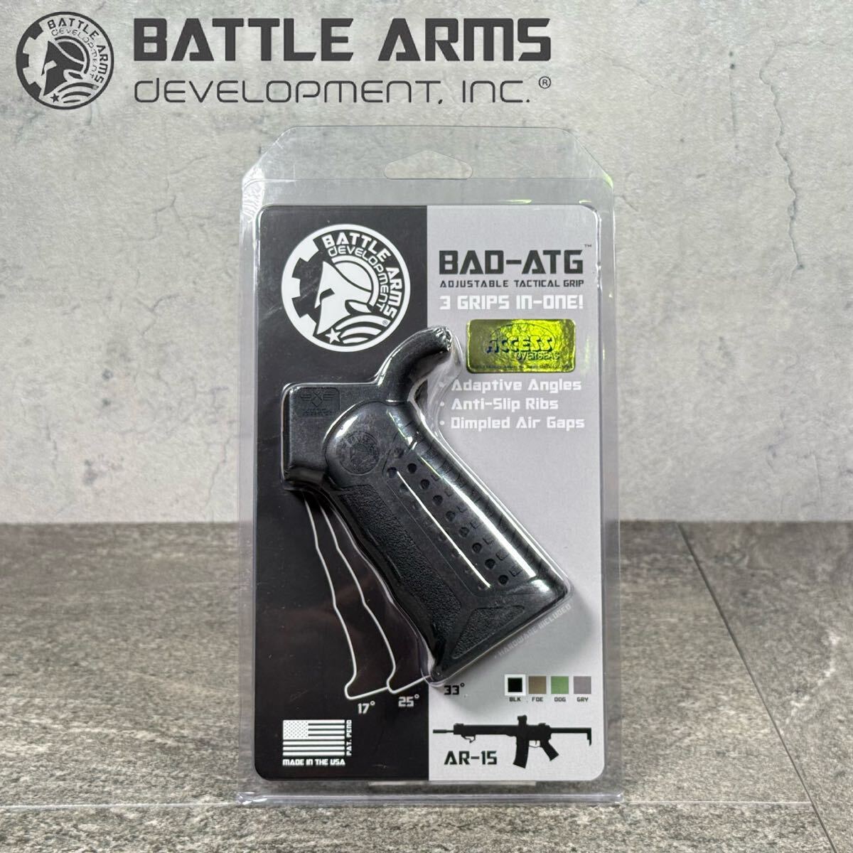 > MJ250924-12【未使用】BAD-ATG BATTLE ARMS バトルアームズ AR-15用 グリップ Made in U.S.A. ブラック トイガン カスタムパーツ