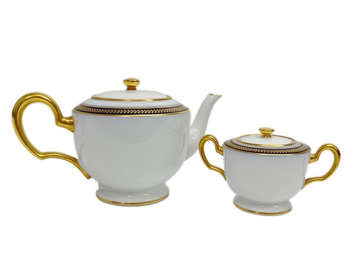 - 大倉陶園 OKURA オークラ ロイヤル ブルー クラウン ティーポット シュガーポット 2点セット 瑠璃エンボス 金彩 洋食器