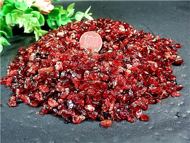 「在庫処分」★天然極品稀少星光ガーネット石榴石チップ179U11-37U47b