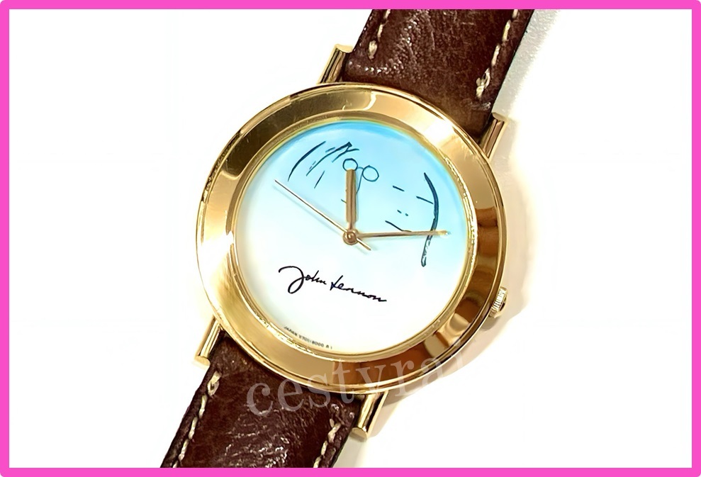 > ジョンレノン 腕時計 V701-8000 水色 白文字盤 ゴールド ラウンド型 ザ・ビートルズ JOHN RENNON 稼働 現状品