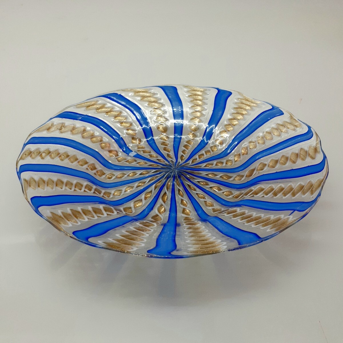 > 【MURANO】ITALY★ムラノ 金彩 ブルー リボン プレート 皿★ヴェネチアン グラス ムラーノ 島 ベネチアン ガラス