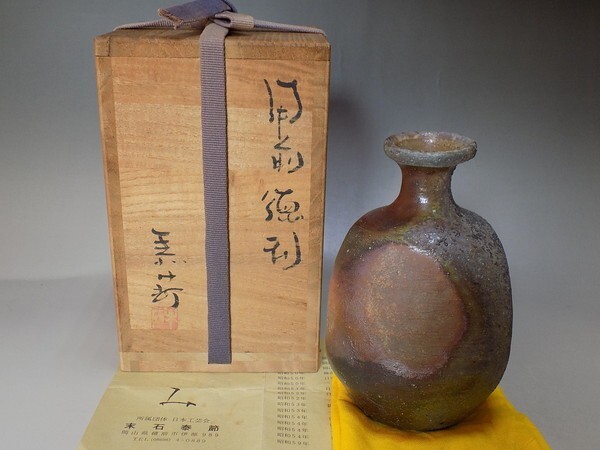 - ★st26★備前焼 末石泰節 窯変三角徳利★