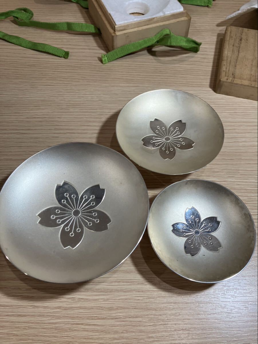 - K【9E45】 銀杯 3点セット 造幣局製 SILVER 211.5g 木箱ケース有り 酒器