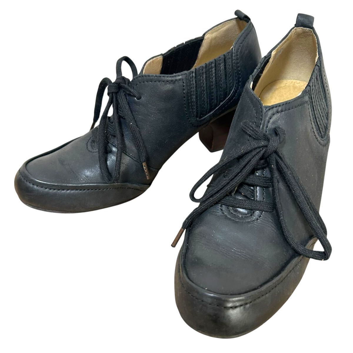 > ※BT1 ing レザーショートブーティ チャンキーヒール ブラック 22.5cmEE