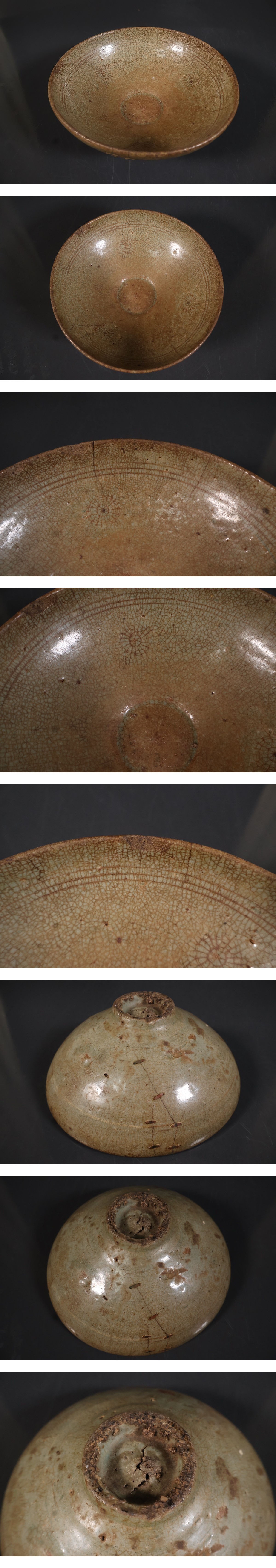 - 【小】5335 朝鮮古美術 高麗 高麗青磁象嵌平鉢 高麗青磁茶碗 花三島象嵌 李朝
