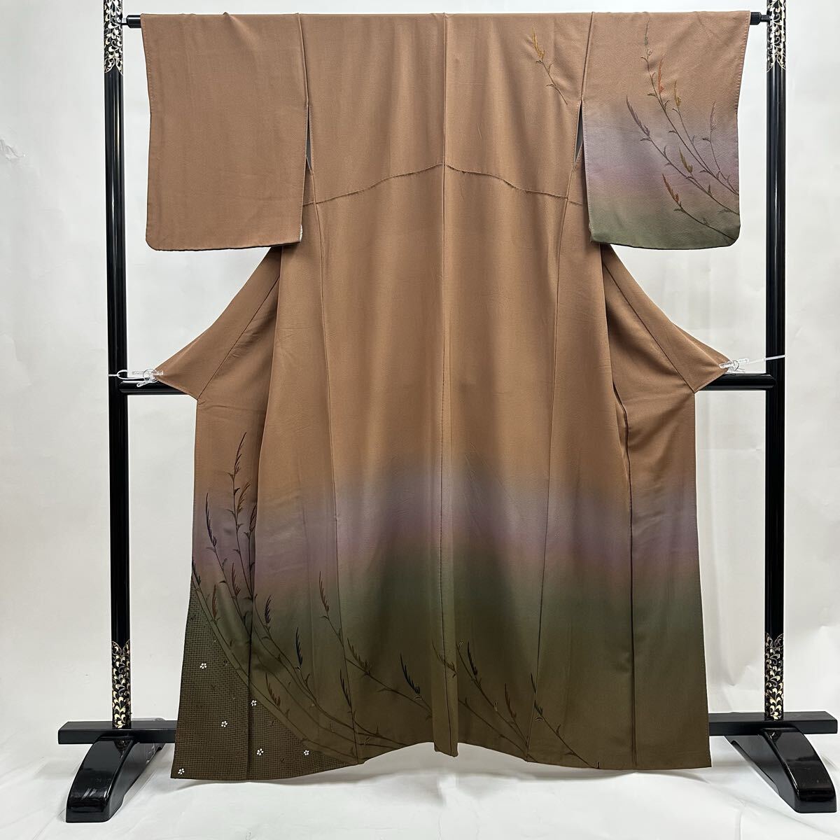 - 【七福】c894 訪問着 刺繍 正絹 暈し染 袷仕立て 中国三大刺繍 汕頭刺繍 蘇州刺繍 着物 逸品 身丈 約158cm 裄 約63.5cm