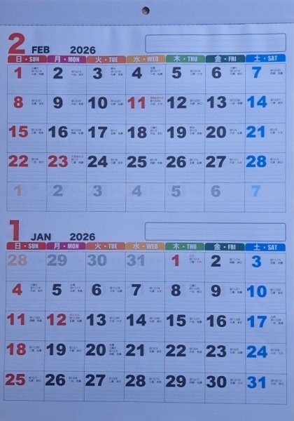 - 【カラー 2ヶ月 A4 壁掛けカレンダー 2026年 30×21cm】★ミシン目入り:カラフルで見やすく★ 2ケ月:2カ月:2か月:2ヵ月