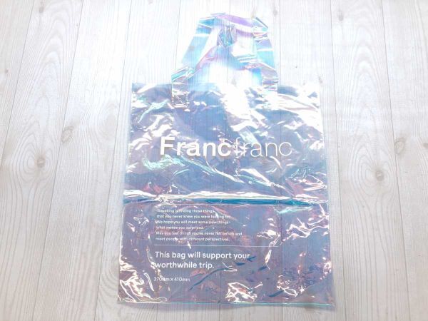 - フランフラン Francfranc テック メルヘン 夢カワ シャイニー 光沢 透け感 オーロラ クリアトート ビニールバッグ 41×37 マチなし